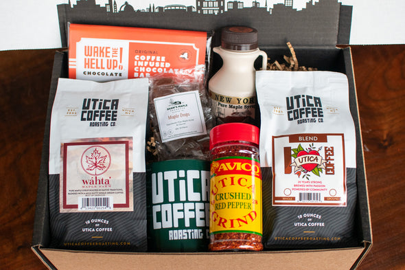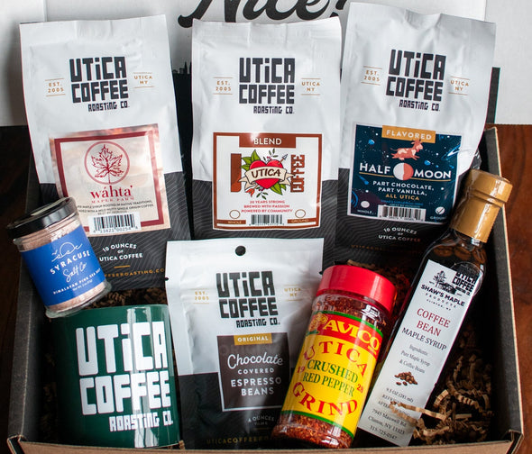 This holiday season, show your appreciation with thoughtful, locally inspired gifts. Utica Coffee Roasting Co. makes it easy with curated boxes featuring our boldest brews, regional favorites like Shaw’s Maple Syrup, and artisan items you can’t find anywhere else.